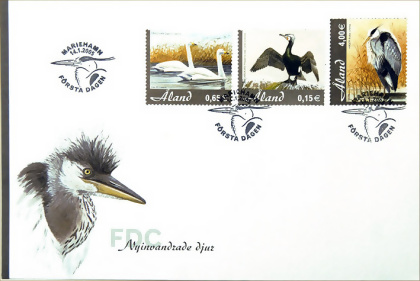 Åland 2005. Nyinvandrade djur. Sångsvan, mellanskarv och gråhäger.