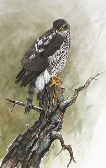 Ovälkommen jägare vid vintermatborden för småfåglarna